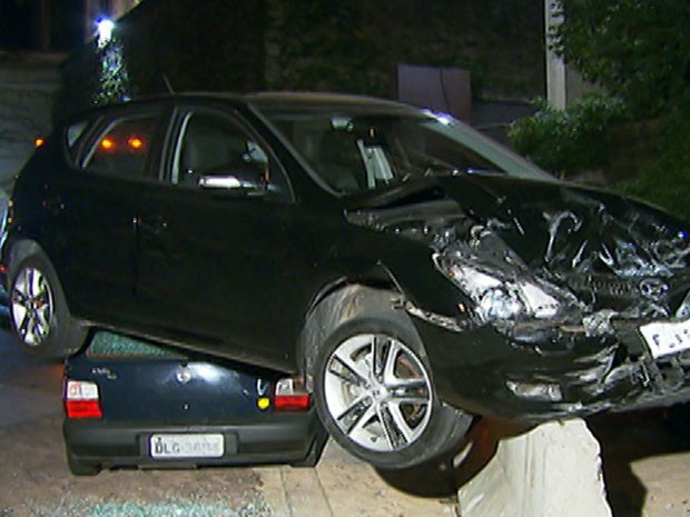 O motorista de um carro preto perdeu o controle depois de bater em uma guia da Marginal Pinheiros na madrugada desta quinta-feira (17). O veículo colidiu em uma Kombi e parou em cima de um Fiat Uno azul e de muretas de concreto .